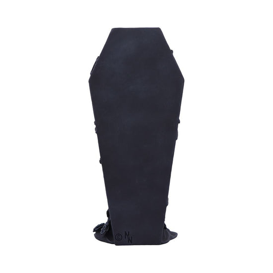Made from durable resin and hand-painted with care, the figurine showcases detailed skeletal forms, a textured coffin design with black roses lining the interior, and a compact shape that’s perfect for shelves, desks, or display cabinets.
