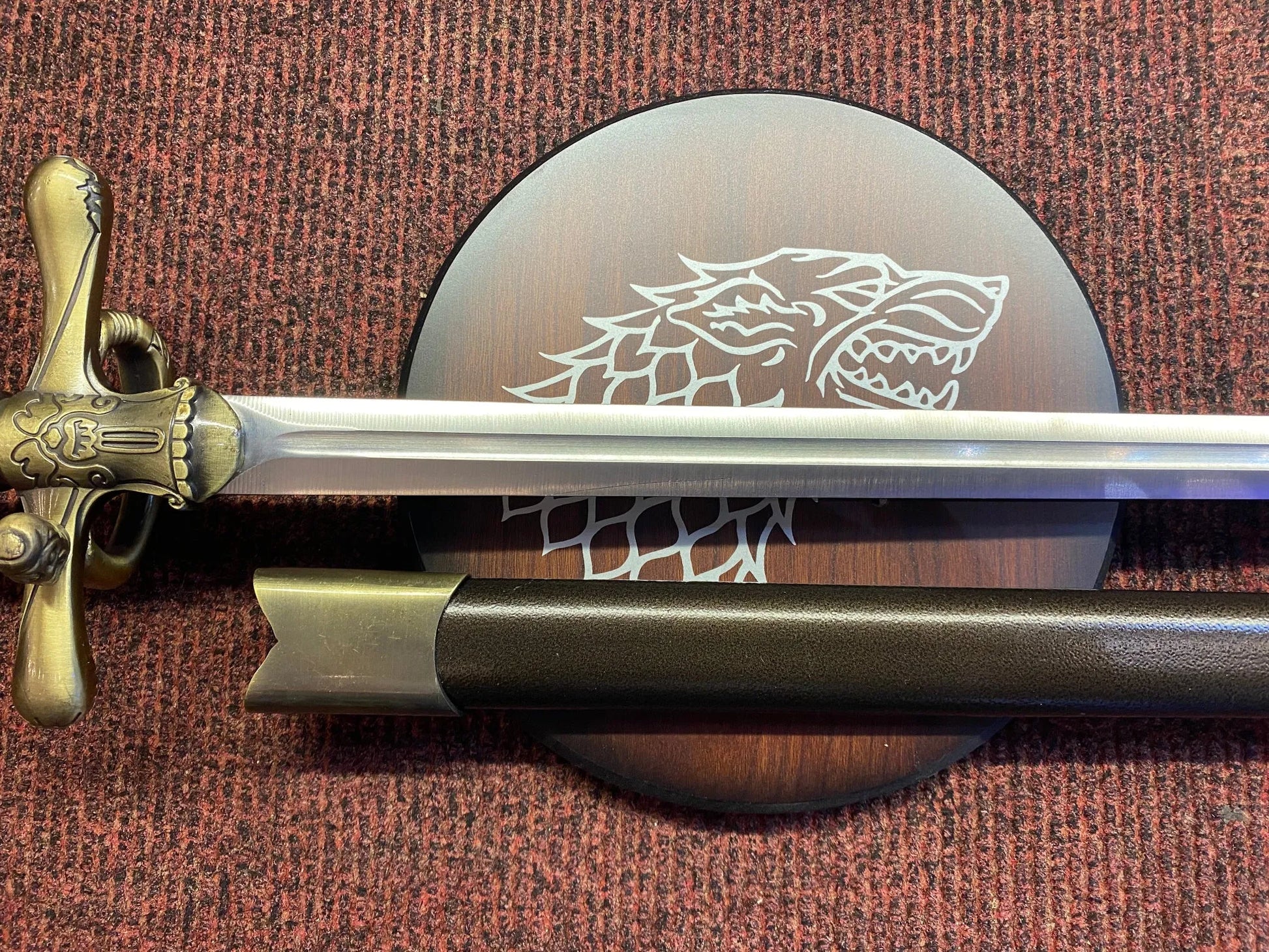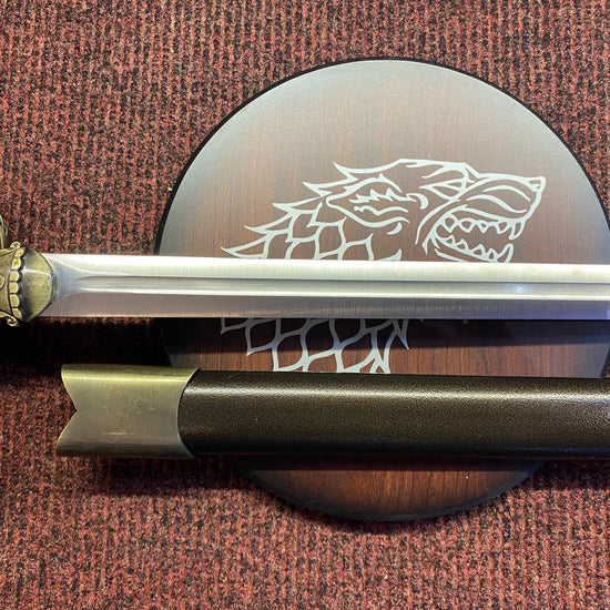 This sword comes complete with a wooden wall plaque adorned with the Stark wolf, perfect for display. The plaque is easy to mount, making it simple to showcase Arya’s trusted weapon in your own home.