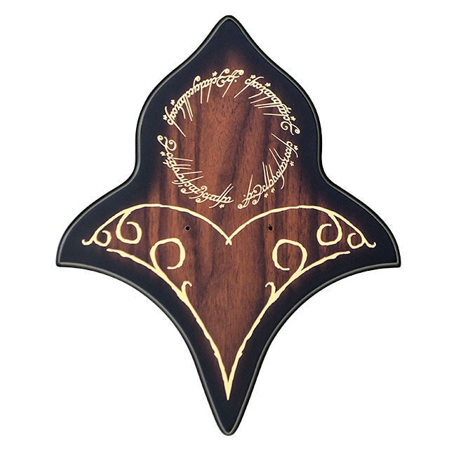 Solid metal guard and pommel, antique metal finish. Plastic handle, Elven vine design on 420 stainless steel blade. Wood display plaque and certificate of authenticity.