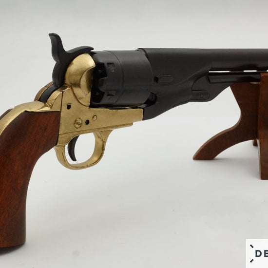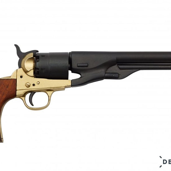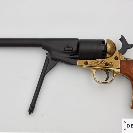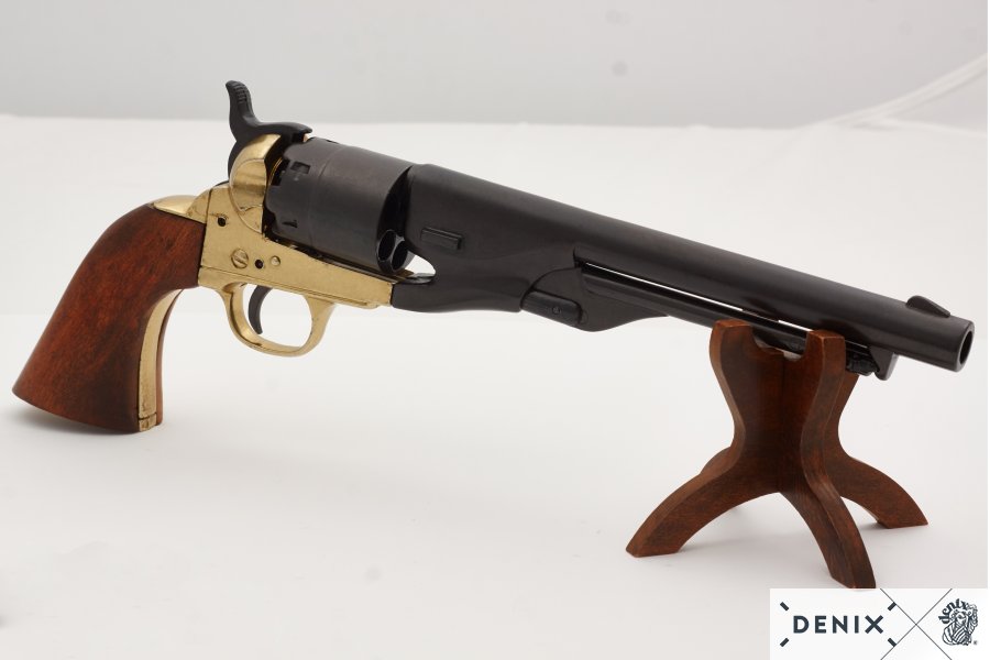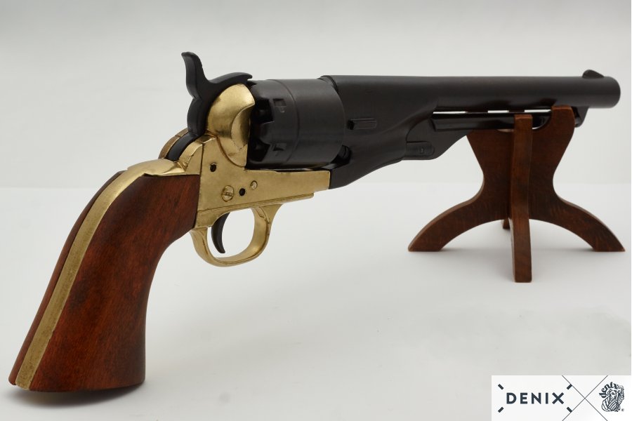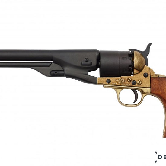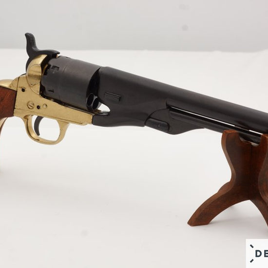 Imitation of the Colt Army 1860 revolver from the American Civil War, made of metal and wood, with a simulated loading and firing mechanism and a rotating cylinder.