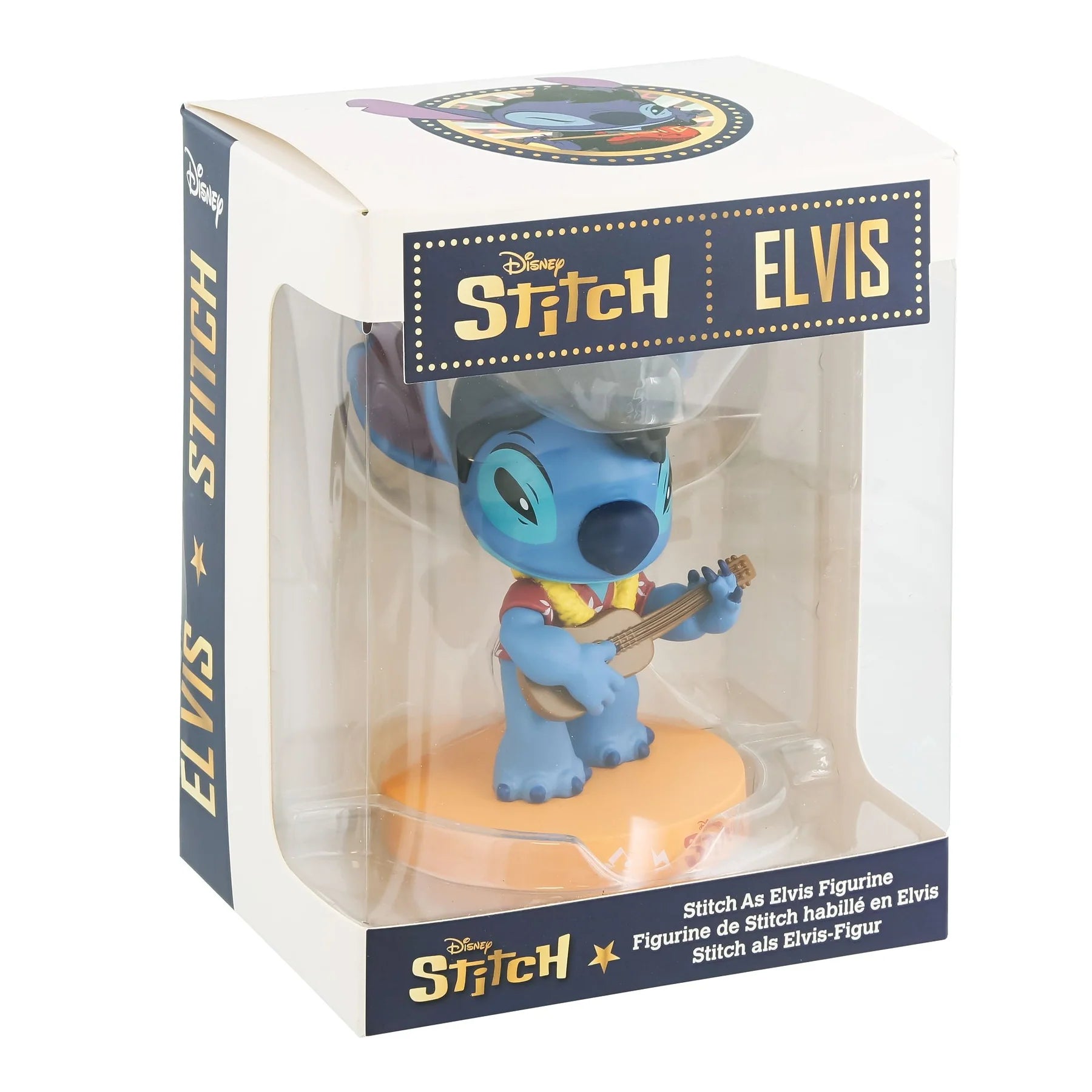 Inspired by Elvis Presley's Blue Hawaii, Grand Jester Studios presents this vinyl Stitch decked out in the red Hawaiian print shirt, yellow lei and ukulele. Presented in a window box.
