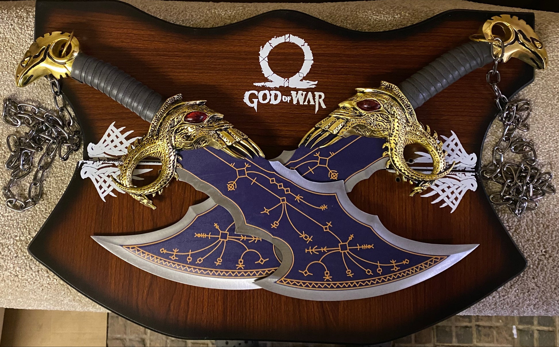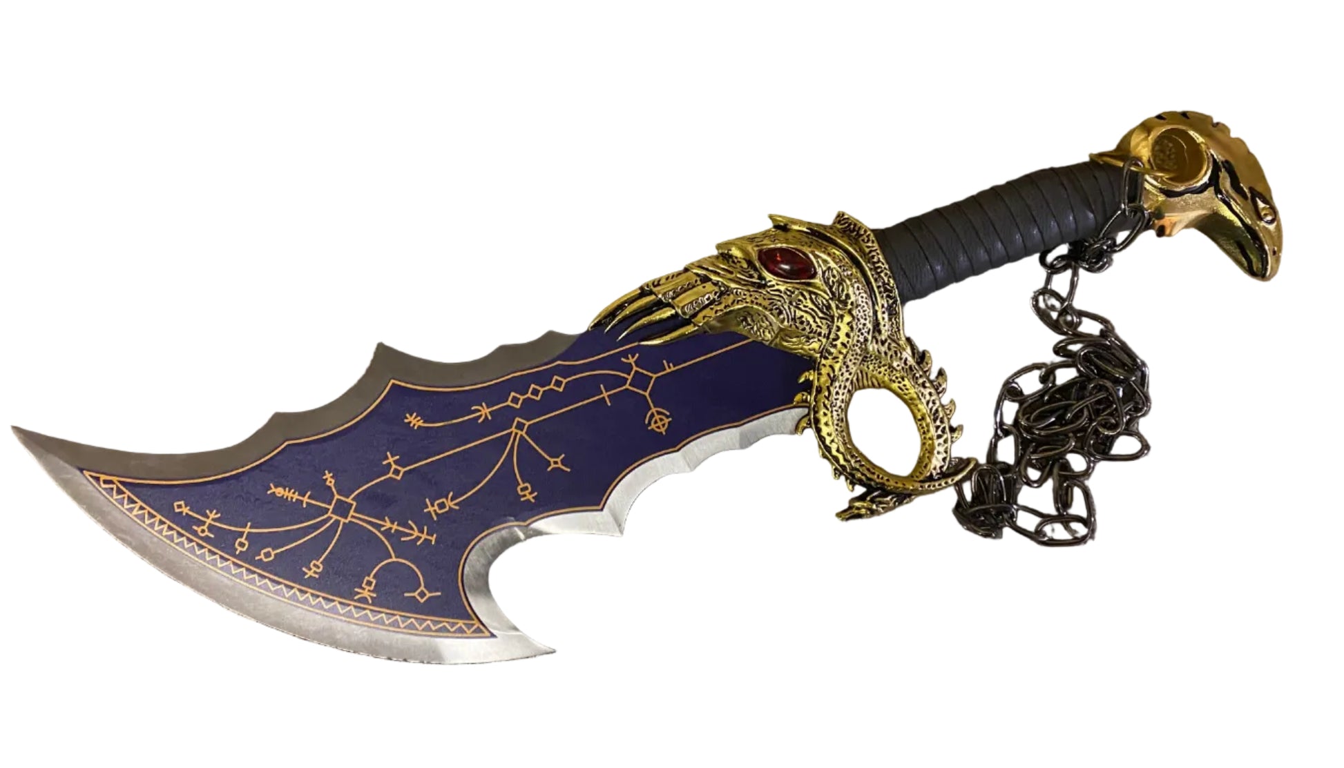 In the God of War series, the "blades" primarily refer to the iconic chained weapons wielded by Kratos. These blades are characterized by their ability to be thrown and retracted via chains seared to the wielder's forearms, and they are infused with elemental fire.