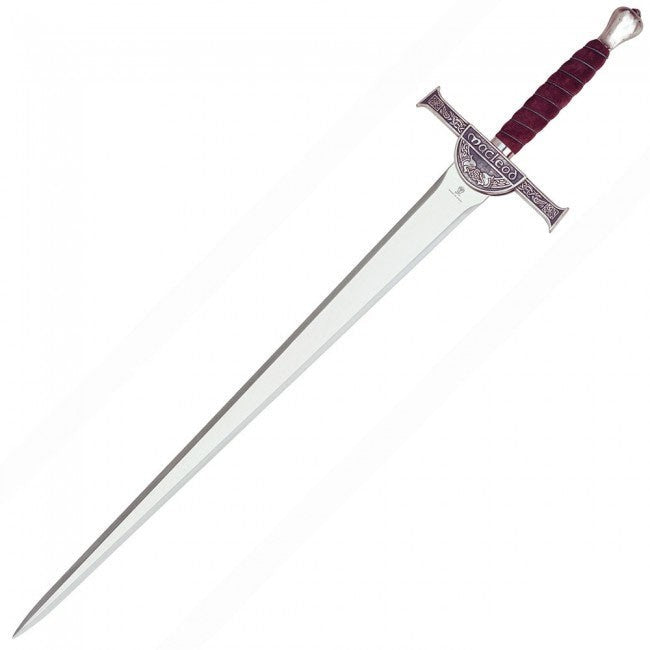 This item is now out of license but made to the same exact specifications as the original licensed product. It features a steel hilt with “Macleod” emblazoned across the guard and a brown suede wrapped handle.