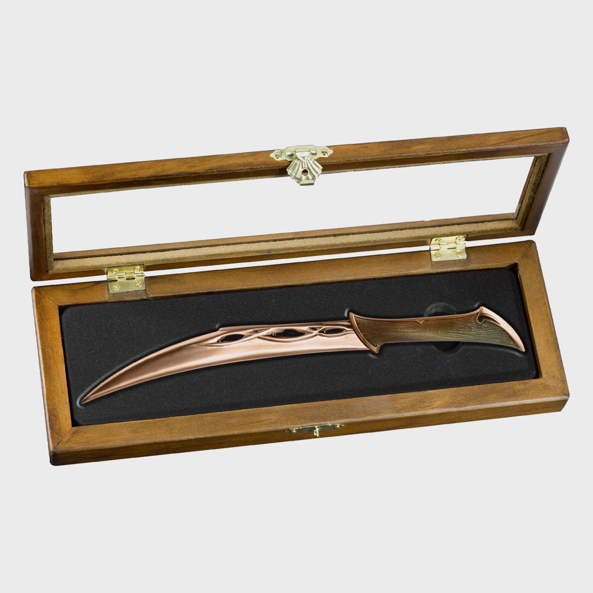 The Elven Dagger of the Mirkwood elf Tauriel recreated as a letter opener in a wooden presentation box.