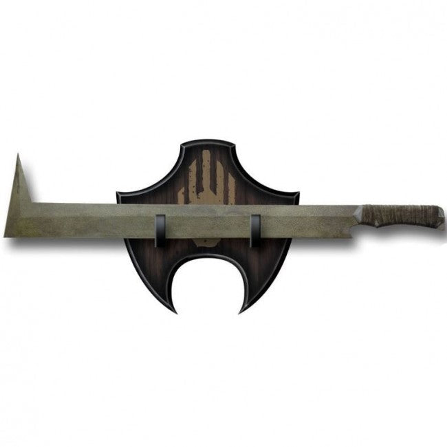 This sword features a high carbon steel blade and leather wrapped wood handle over the full tang construction. This item offers the exact details of the original piece and includes a certificate of authenticity and display plaque.